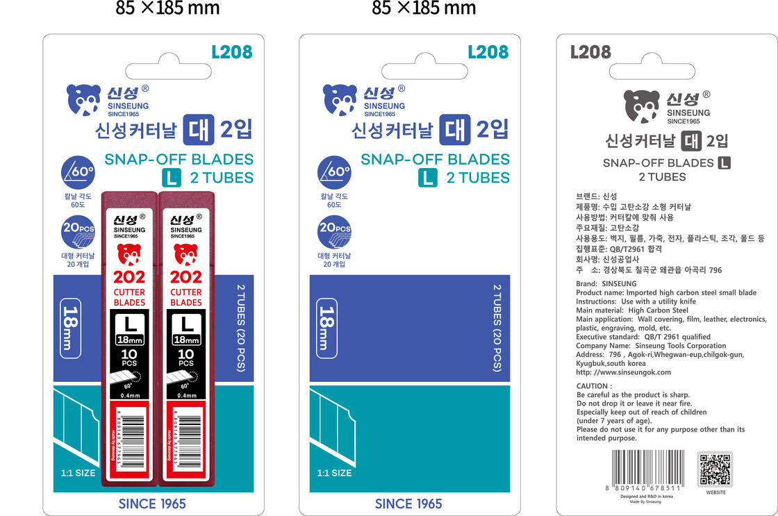 SINSEUNG L207 18mm シルバー スナップブレードは,様々な職業の専門家によって非常に好まれている,重作業切削を必要とする厳しいプロジェクトのための完璧な選択です.これらの刃は,安全にブリスターパックに包装されています.L202ブレードが2箱入っています