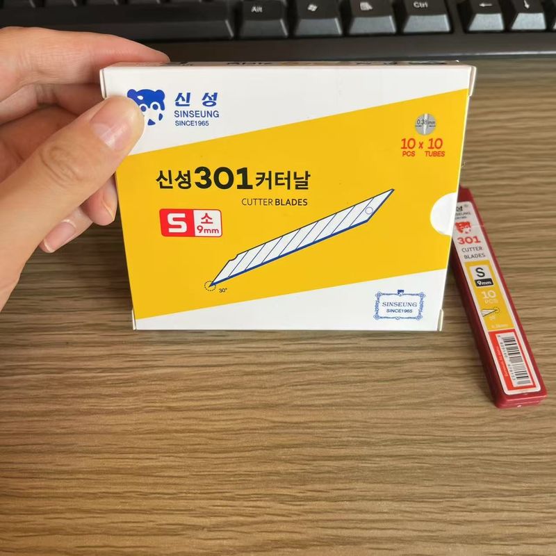 SINSEUNG 9mm カッターブレード (モデル:S301) は,さまざまな製品アプリケーションの機会とシナリオに適した汎用ツールです.小さなカッターブレードは,尖端が30°の角度で設計されています.切断作業の精度と効率性を確保する銀色は刃に滑らかさを加え,視覚的に魅力的なものにします.