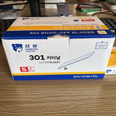SINSEUNG 9mm カッターブレッドの最小注文量は1箱で,その内には8000個のブレードがあります.パッケージの詳細は効率的に組織されています.小さな箱に10個のチューブこの配置により,使用者や小売業者にとって保管と輸送が便利になります.