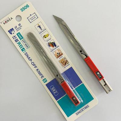 Sinseung S506ユーティリティナイフの重要な製品属性の1つは、そのロックメカニズムであり、安全なブレードポジショニングのための便利なスライドメカニズムを備えています。これにより、紙、段ボール、車のフィルム、プラスチックの薄いシート、その他の軽量素材などのタスクの実用的な家庭用ナイフになります。